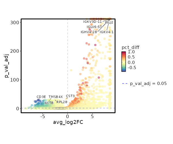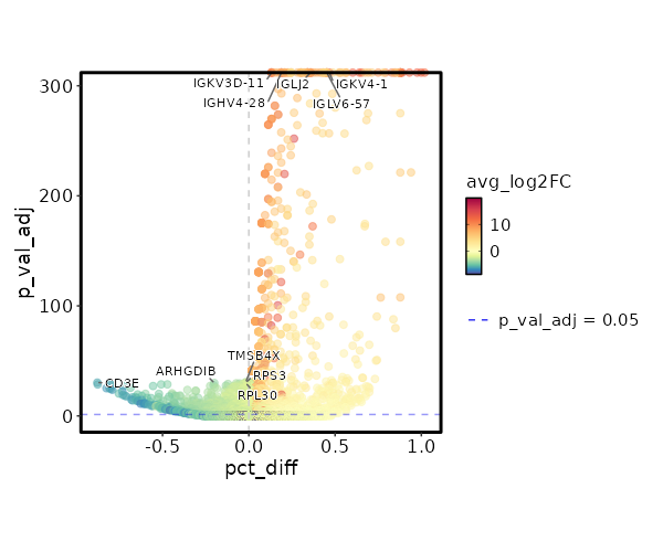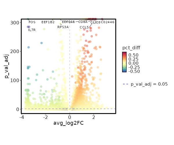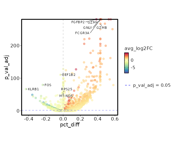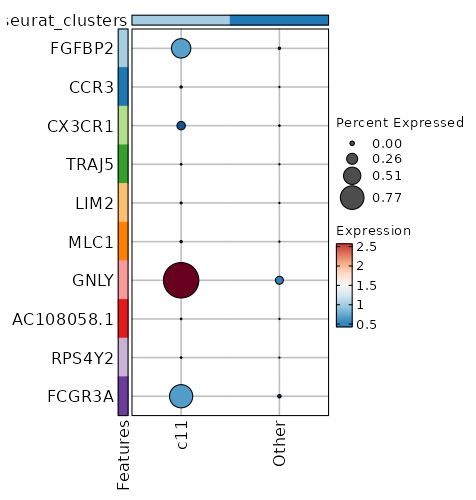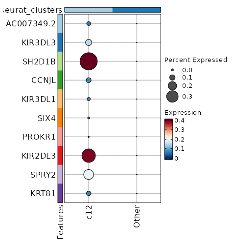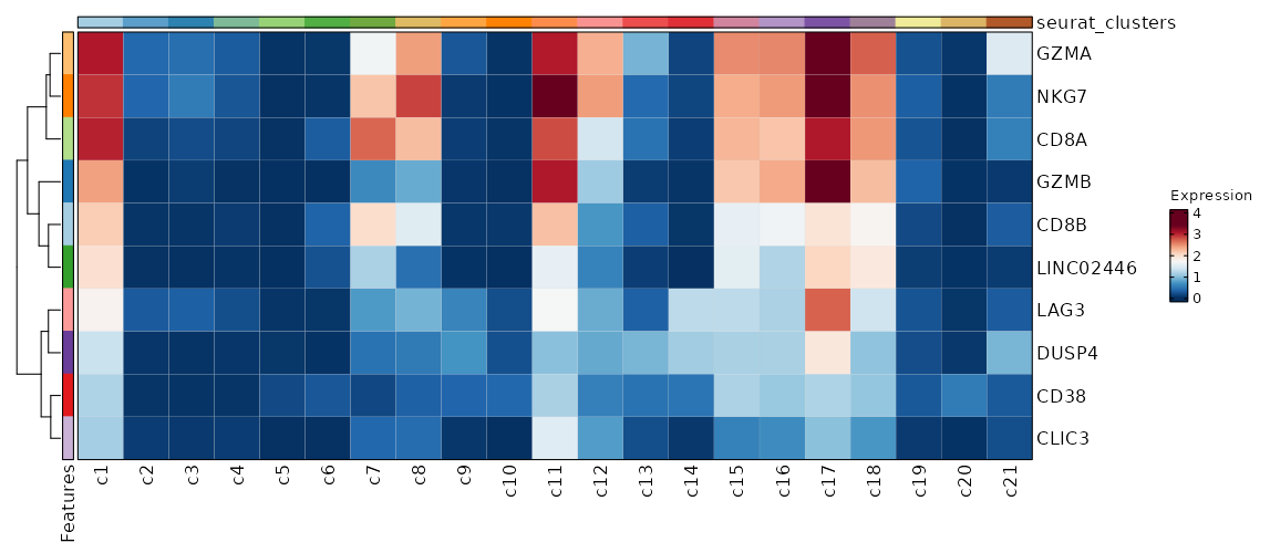 0 4.9331 0.408 0.023 0 FGFBP2 c11 0 3.8493 0.771 0.15 0 GNLY c11 0 3.6862 0.494 0.05 0 FCGR3A c11 0 2.8214 0.891 0.18 0 GZMH c11 1.959e-272 2.3849 0.934 0.254 6.569e-268 GZMB c11 6.305e-256 2.0762 0.848 0.186 2.115e-251 GZMK c11 1.427e-226 2.7499 0.816 0.229 4.784e-222 CLIC3 c11 7.395e-225 2.3739 1 0.452 2.48e-220 NKG7 c11 1.359e-210 3.0684 0.69 0.166 4.558e-206 CEBPD c11 1.129e-204 2.379 0.966 0.442 3.787e-200 PRF1 c11 1.346e-189 1.8717 0.949 0.339 4.514e-185 CD8B c11 7.435e-183 2.4084 0.686 0.175 2.494e-178 SAMD3 c11 1.246e-181 1.9554 0.927 0.336 4.178e-177 CCL4 c11 4.551e-167 1.9576 0.938 0.488 1.526e-162 LITAF c11 1.136e-164 1.3719 0.991 0.409 3.811e-160 GZMA c11 8.25e-163 2.5407 0.543 0.116 2.767e-158 PLEK c11 2.795e-157 2.7144 0.543 0.122 9.374e-153 ZNF683 c11 1.076e-153 1.508 0.966 0.376 3.608e-149 CD8A c11 3.686e-152 1.5052 0.991 0.663 1.236e-147 CST7 c11 7.515e-149 1.844 0.842 0.318 2.52e-144 C12orf75 c11