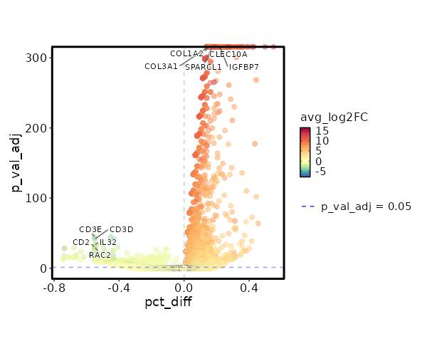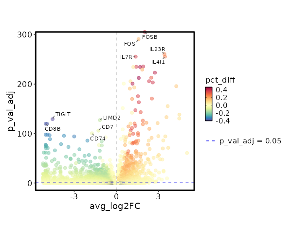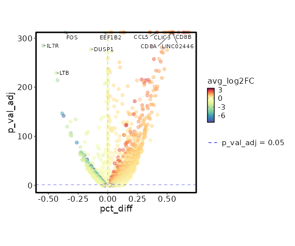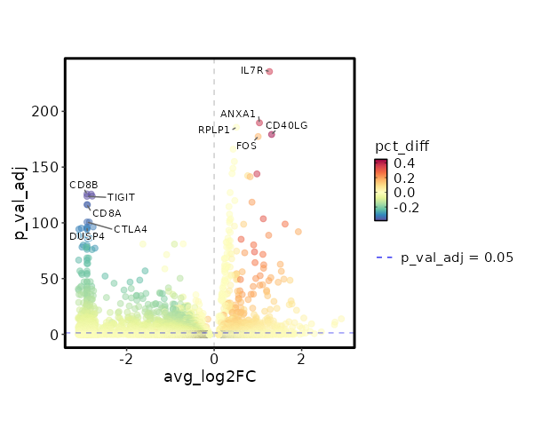 6.359e-241 1.2643 0.991 0.62 2.133e-236 IL7R c2 5.688e-195 1.0347 0.984 0.605 1.908e-190 ANXA1 c2 6.279e-191 0.5074 1 0.999 2.106e-186 RPLP1 c2 1.678e-184 1.3133 0.758 0.309 5.628e-180 CD40LG c2 1.206e-182 1.0055 0.997 0.823 4.043e-178 FOS c2 2.625e-171 0.4353 1 0.999 8.804e-167 EEF1A1 c2 2.713e-160 0.4619 1 0.998 9.099e-156 TPT1 c2 3.3e-154 0.4301 1 0.998 1.107e-149 RPS14 c2 1.929e-149 0.4088 1 0.999 6.47e-145 RPL10 c2 3.882e-149 0.978 0.904 0.529 1.302e-144 KLRB1 c2 1.604e-147 0.7667 0.997 0.912 5.379e-143 VIM c2 1.35e-146 0.8221 0.99 0.84 4.528e-142 S100A4 c2 2.312e-132 0.3653 1 0.999 7.753e-128 RPS27A c2 3.223e-125 0.472 1 0.997 1.081e-120 RPLP0 c2 8.987e-124 0.8646 0.928 0.723 3.014e-119 S100A11 c2 7.74e-120 0.338 1 0.998 2.596e-115 RPS3 c2 5.334e-113 0.3508 1 0.998 1.789e-108 RPL32 c2 6.968e-109 1.123 0.689 0.375 2.337e-104 LGALS3 c2 9.451e-109 0.3772 1 0.998 3.17e-104 RPL34 c2 2.114e-107 0.3527 1 0.997 7.089e-103 RPS25 c2