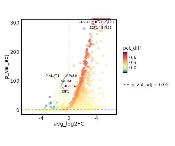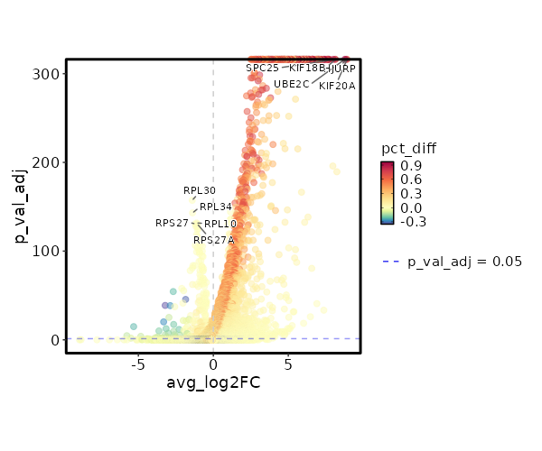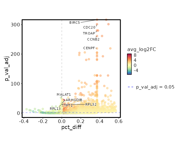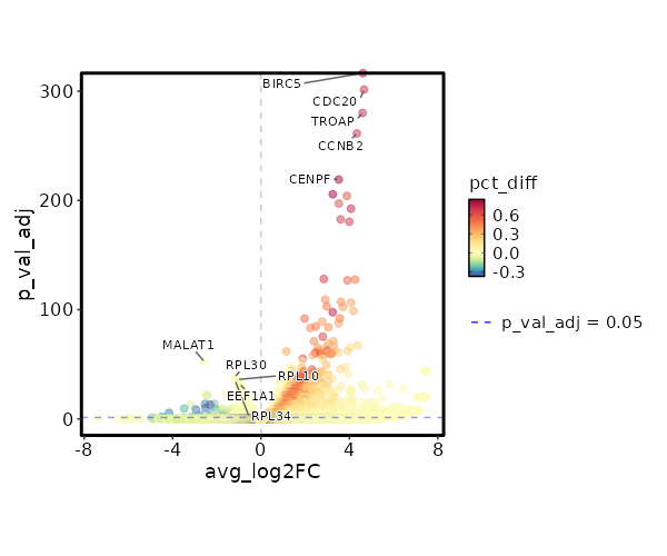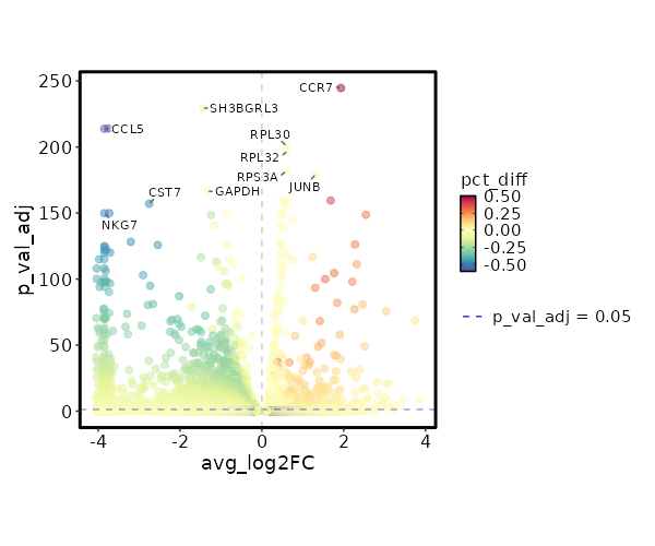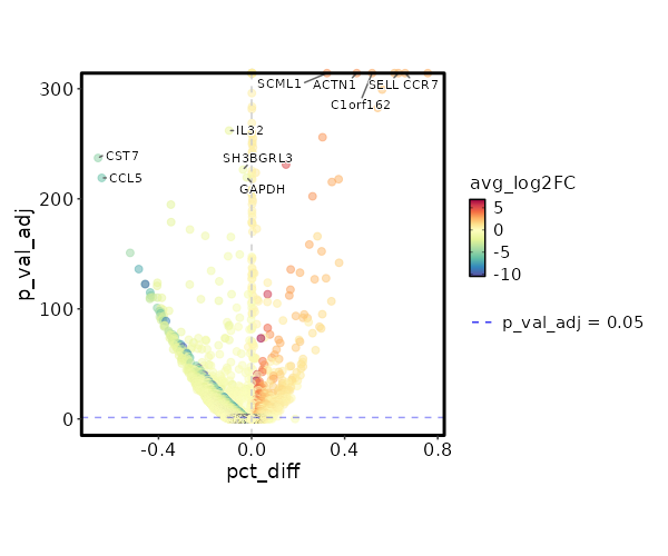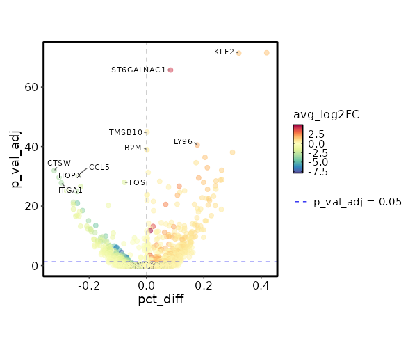 5.673e-250 1.9327 0.7 0.198 1.903e-245 CCR7 c5 3.185e-206 0.5922 1 0.998 1.068e-201 RPL30 c5 4.693e-202 0.6197 1 0.998 1.574e-197 RPL32 c5 9.742e-187 0.5837 1 0.997 3.267e-182 RPS3A c5 2.369e-184 1.309 0.986 0.958 7.945e-180 JUNB c5 4.914e-165 0.5538 1 0.998 1.648e-160 RPS13 c5 8.398e-165 1.6815 0.702 0.297 2.817e-160 TCF7 c5 1.56e-164 0.4801 1 0.998 5.23e-160 RPS3 c5 1.724e-163 0.6412 0.998 0.994 5.782e-159 RPL9 c5 8.994e-160 0.5704 1 0.999 3.016e-155 RPS12 c5 1.703e-155 0.481 1 0.998 5.71e-151 RPL11 c5 3.055e-154 0.4812 1 0.999 1.025e-149 RPS27A c5 6.224e-154 2.5421 0.386 0.095 2.087e-149 LINC00402 c5 1.12e-149 0.7502 1 0.999 3.757e-145 MALAT1 c5 9.71e-146 0.4595 1 0.998 3.257e-141 RPL19 c5 3.309e-144 0.5164 1 0.999 1.11e-139 RPS8 c5 4.588e-133 0.4418 1 0.999 1.539e-128 RPL13 c5 8.682e-132 0.4796 0.999 0.998 2.912e-127 RPS14 c5 1.793e-131 2.2784 0.375 0.099 6.013e-127 C1orf162 c5 8.141e-128 0.5349 0.998 0.994 2.73e-123 RPL21 c5