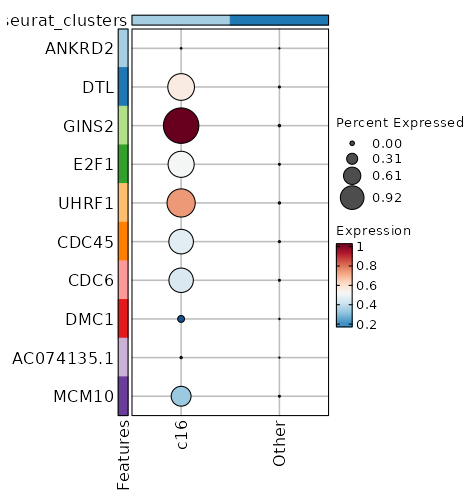 0 5.9211 0.682 0.017 0 DTL c16 0 5.7765 0.918 0.03 0 GINS2 c16 0 5.7082 0.665 0.015 0 E2F1 c16 0 5.4808 0.722 0.025 0 UHRF1 c16 0 5.4097 0.624 0.018 0 CDC45 c16 0 5.4014 0.62 0.016 0 CDC6 c16 0 5.3223 0.498 0.015 0 MCM10 c16 0 5.0923 0.918 0.035 0 CDT1 c16 0 4.8203 0.878 0.039 0 MCM2 c16 0 4.8055 0.457 0.012 0 FAM111B c16 0 4.6684 0.829 0.035 0 CLSPN c16 0 4.6266 0.816 0.039 0 MCM4 c16 0 4.6076 0.449 0.014 0 CCNE1 c16 0 4.3099 0.62 0.026 0 CHEK1 c16 0 4.2817 0.927 0.044 0 TYMS c16 0 4.2359 0.392 0.016 0 E2F2 c16 0 4.222 0.69 0.04 0 TK1 c16 0 4.1316 0.559 0.021 0 CHAF1B c16 0 4.0945 0.898 0.062 0 PCLAF c16 0 4.0822 0.971 0.102 0 MCM7 c16