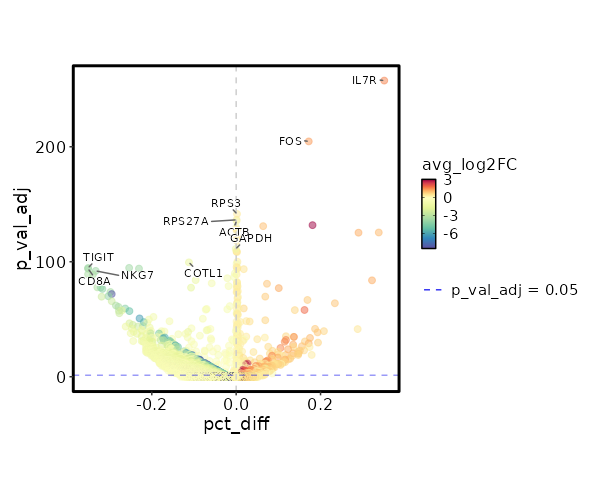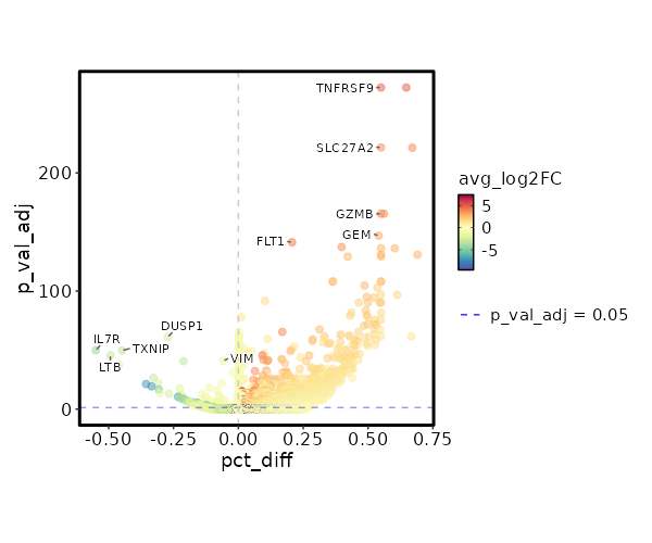 8.383e-263 1.6323 0.98 0.629 2.812e-258 IL7R c4 6.453e-210 1.404 0.998 0.826 2.164e-205 FOS c4 8.277e-147 0.431 1 0.998 2.776e-142 RPS3 c4 1.063e-141 0.4385 1 0.999 3.565e-137 RPS27A c4 4.382e-137 3.0572 0.212 0.031 1.47e-132 ADAM23 c4 3.3e-136 1.0198 0.99 0.926 1.107e-131 DUSP1 c4 1.864e-133 0.4446 1 0.999 6.252e-129 RPL10 c4 1.351e-132 0.4307 1 0.999 4.53e-128 EEF1A1 c4 1.035e-130 1.0911 0.953 0.615 3.47e-126 ANXA1 c4 1.56e-130 1.2341 0.9 0.61 5.233e-126 FOSB c4 9.397e-127 0.4502 1 0.998 3.152e-122 RPS14 c4 3.316e-123 0.4262 1 0.998 1.112e-118 RPL32 c4 3.146e-114 0.4591 1 0.999 1.055e-109 RPL34 c4 3.872e-114 0.4286 1 0.999 1.299e-109 RPS12 c4 1.268e-113 0.3968 1 0.998 4.253e-109 RPL30 c4 2.539e-105 0.3895 1 0.997 8.516e-101 RPS3A c4 1.057e-100 0.3987 1 0.999 3.545e-96 RPLP1 c4 7.126e-100 0.405 1 0.997 2.39e-95 RPL39 c4 6.673e-99 0.3475 1 0.998 2.238e-94 RPL11 c4 7.968e-99 0.5298 0.998 0.98 2.672e-94 EEF1B2 c4