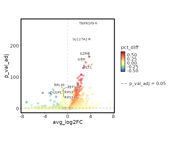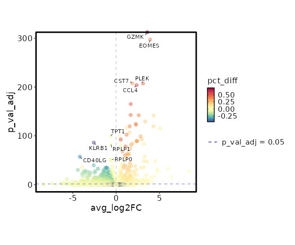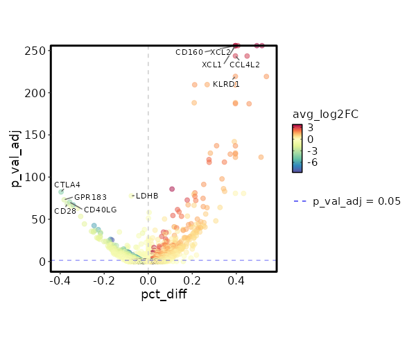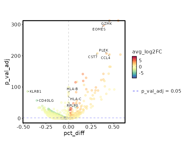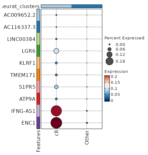 0 3.5798 0.913 0.175 0 GZMK c8 1.194e-302 3.923 0.435 0.047 4.003e-298 EOMES c8 9.325e-213 1.8705 0.978 0.66 3.127e-208 CST7 c8 1.899e-212 3.0938 0.531 0.111 6.37e-208 PLEK c8 4.105e-209 2.3564 0.873 0.332 1.377e-204 CCL4 c8 2.669e-170 1.6835 0.932 0.449 8.951e-166 NKG7 c8 6.775e-148 1.6806 0.733 0.29 2.272e-143 HLA-DPB1 c8 2.466e-147 2.6054 0.524 0.139 8.27e-143 CCL4L2 c8 8.648e-147 4.3258 0.171 0.013 2.9e-142 IFNG-AS1 c8 1.019e-134 3.3524 0.219 0.025 3.419e-130 FCRL3 c8 1.68e-129 2.276 0.575 0.19 5.635e-125 GZMH c8 9.143e-128 2.2821 0.539 0.178 3.066e-123 SAMD3 c8 9.3e-125 4.3147 0.18 0.018 3.119e-120 ENC1 c8 1.476e-124 1.5595 0.712 0.316 4.951e-120 HLA-DPA1 c8 5.681e-122 1.2153 0.988 0.895 1.905e-117 CD74 c8 2.581e-120 5.0398 0.079 0.002 8.655e-116 LGR6 c8 7.076e-112 1.5548 0.913 0.742 2.373e-107 DUSP2 c8 1.983e-107 1.2012 0.714 0.313 6.651e-103 HLA-DRB1 c8 2.115e-104 0.383 1 0.999 7.095e-100 B2M c8 4.96e-104 2.8208 0.56 0.258 1.663e-99 CMC1 c8