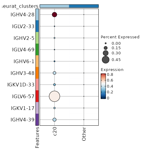 0 19.6959 0.189 0 0 IGHV4-28 c20 0 15.2738 0.453 0.001 0 IGLV6-57 c20 0 14.0825 0.472 0.005 0 IGKV4-1 c20 0 13.3772 0.358 0 0 IGLJ2 c20 0 13.29 0.132 0 0 IGKV3D-11 c20 0 12.8242 0.906 0 0 SDC1 c20 0 12.8037 1 0.014 0 JCHAIN c20 0 12.6816 0.642 0.001 0 IGLC2 c20 0 12.6453 0.604 0.002 0 IGLV3-1 c20 0 12.3874 0.34 0 0 IGHJ4 c20 0 12.2303 0.943 0.005 0 IGHA1 c20 0 12.1908 1 0 0 TNFRSF17 c20 0 12.0925 0.189 0 0 IGLC3 c20 0 12.0705 0.453 0 0 AMPD1 c20 0 12.0245 0.906 0.001 0 IGLL5 c20 0 11.8794 0.132 0 0 IGHJ6 c20 0 11.8298 0.66 0.006 0 IGKC c20 0 11.5971 0.849 0.002 0 IGHA2 c20 0 11.0063 0.302 0 0 GJB2 c20 0 10.8333 0.34 0 0 SMOC1 c20