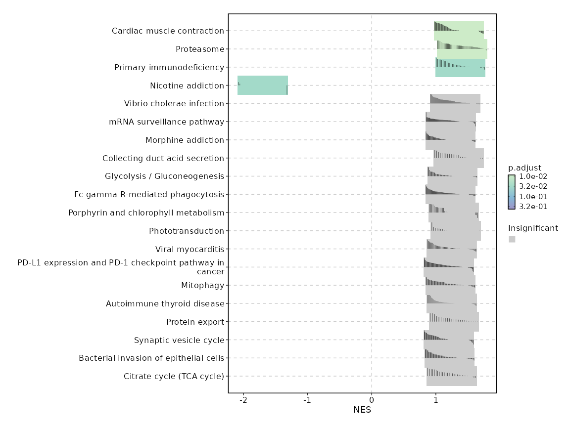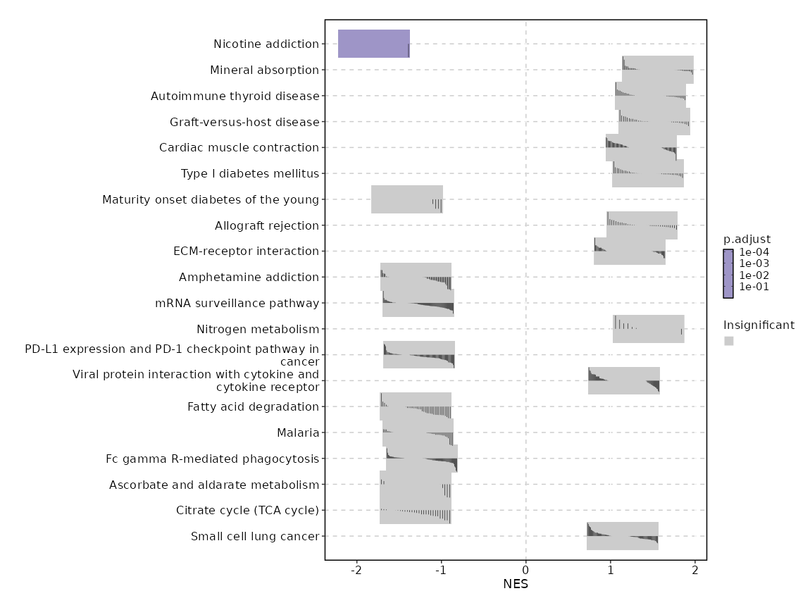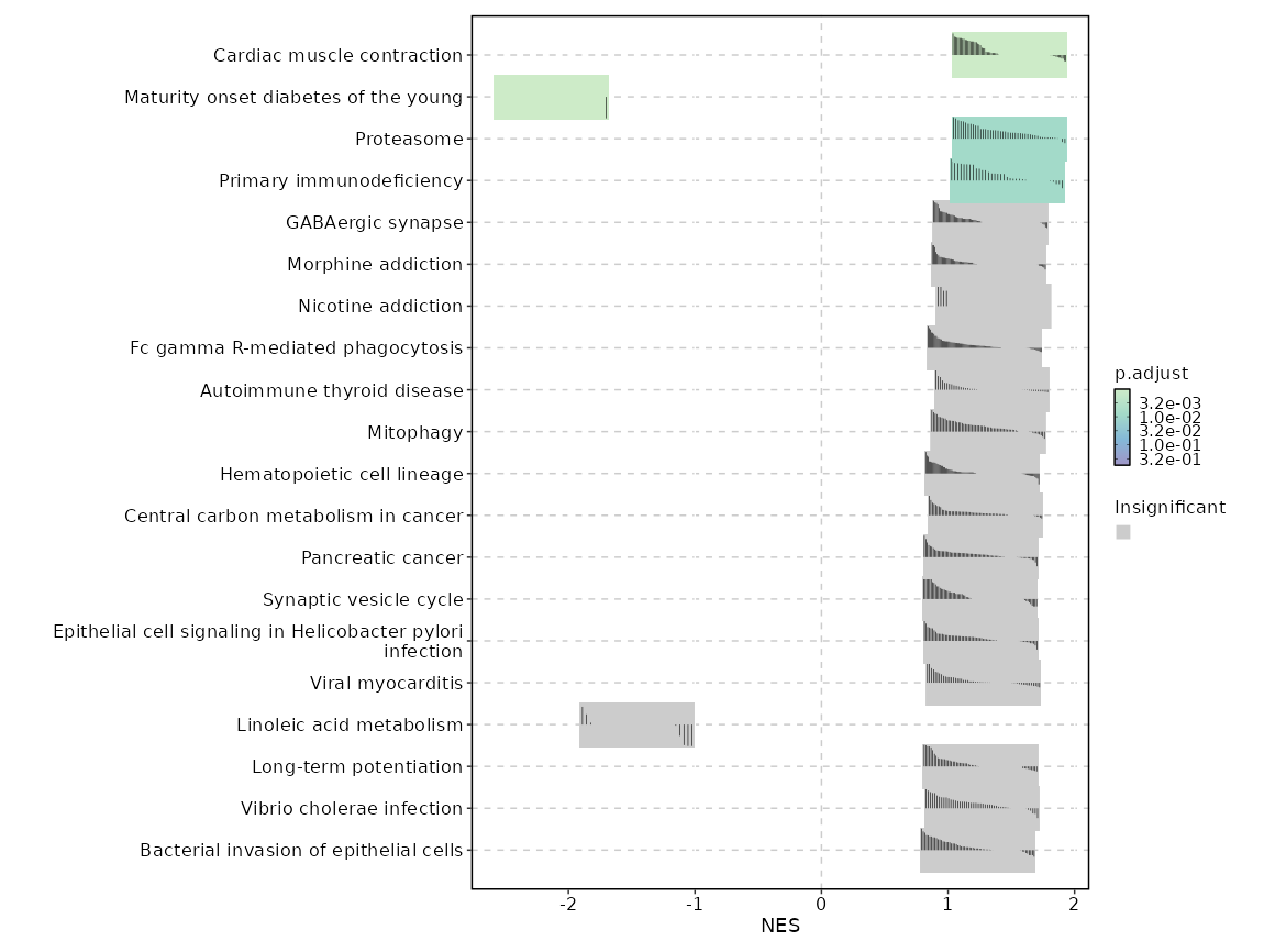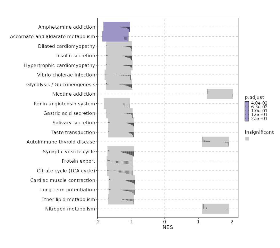 | Gastric acid secretion | 0.0787 | 0.7516 | 0.2878 | -0.4682 | -1.1564 | 76 | ATP1B1,PLCB3,PLCB2,PRKACB,KCNQ1,ATP1A4,ATP1A1,CALM1,CAMK2B,ADCY4,CHRM3,PLCB1,ACTB,CAMK2D,GNAI3,SLC9A1,ITPR1,ATP1B2 |