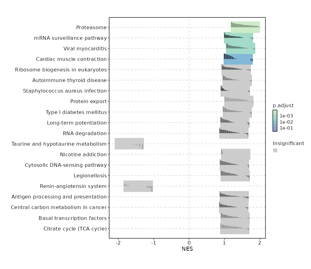 | mRNA surveillance pathway | 0.0631 | 0.9868 | 0.19 | -0.5821 | -1.2745 | 98 | FUS,FIP1L1,PPP2CA,PPP1CC,GLE1,PCF11,SMG6,PPP2R5D,PPP2R5A,SYMPK,PELO,PPP2R5E,EIF4A3,CPSF3,NCBP2,TARDBP,CPSF7,CPSF6,PPP2R2B,CPSF2,DDX19A,WDR82,DDX39B,UPF3A,CSTF2T,ACIN1,CPSF1,SMG7,RNGTT,NUDT21,PAPOLG,CASC3,PPP2R1B,PAPOLA,NCBP1,PPP2R1A,GSPT2,MAGOHB,DDX19B,NXT2,PNN,UPF2,PPP2R2A,SSU72,CSTF1,NXT1,SMG1,PABPN1 |