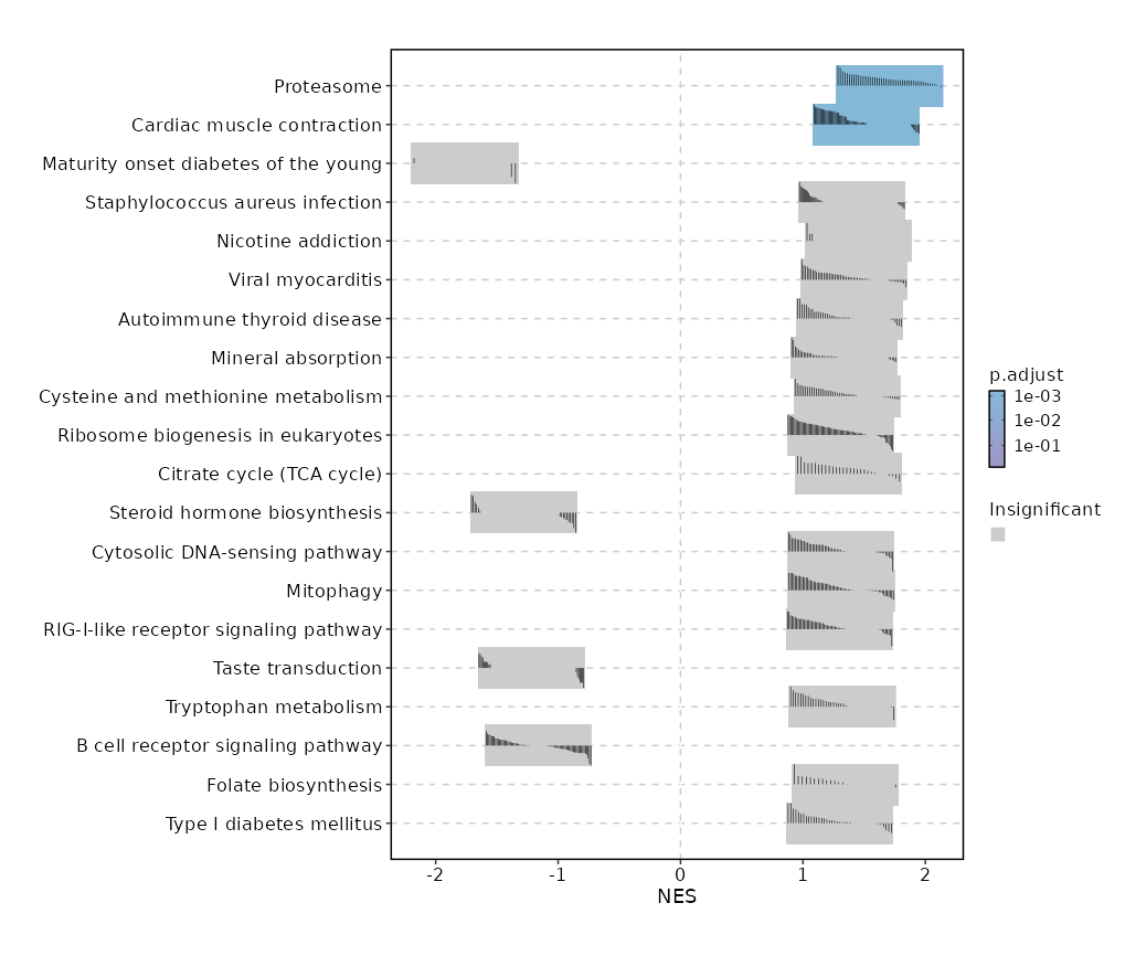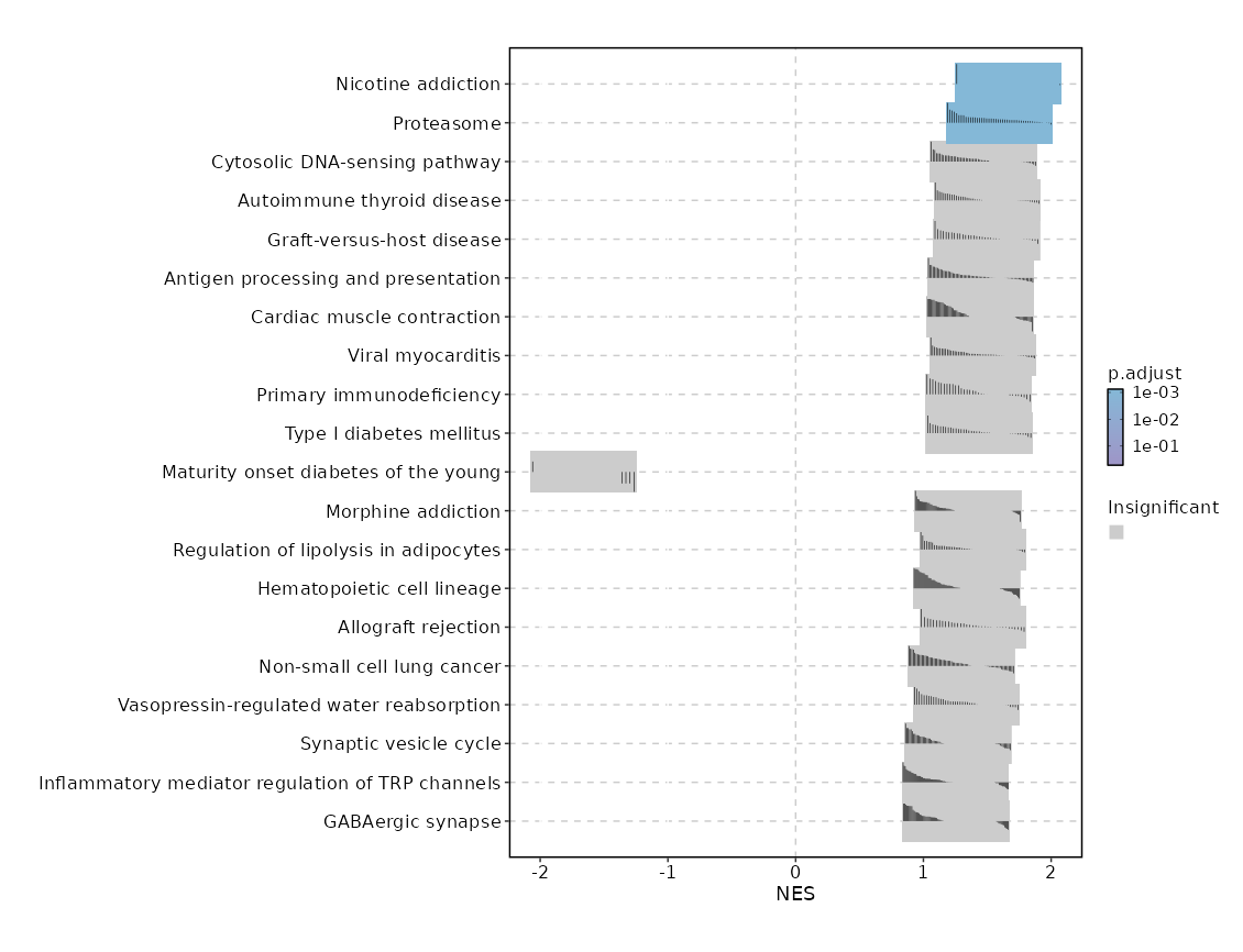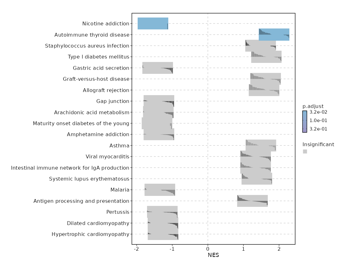 | Antigen processing and presentation | 0.0305 | 0.3425 | 0.2617 | 0.6782 | 1.272 | 69 | CD74,HLA-B,HLA-DRB1,HLA-DRA,CD8B,CD8A,PSME2,B2M,TAP1,HLA-A,PSME1,HLA-DRB5,HLA-DQB1,HLA-DPB1,HLA-DPA1,KLRC1,HLA-G,HLA-F,CIITA,HLA-C,IFNG,CALR,KLRD1,HLA-DQA1,HSPA4,RFX5,HSP90AA1,RFXANK,TAPBP,HSPA2,HLA-E,CANX,PSME3,HLA-DMA,CTSS,HSPA5,HSPA6,HSPA1L,PDIA3,HLA-DMB |