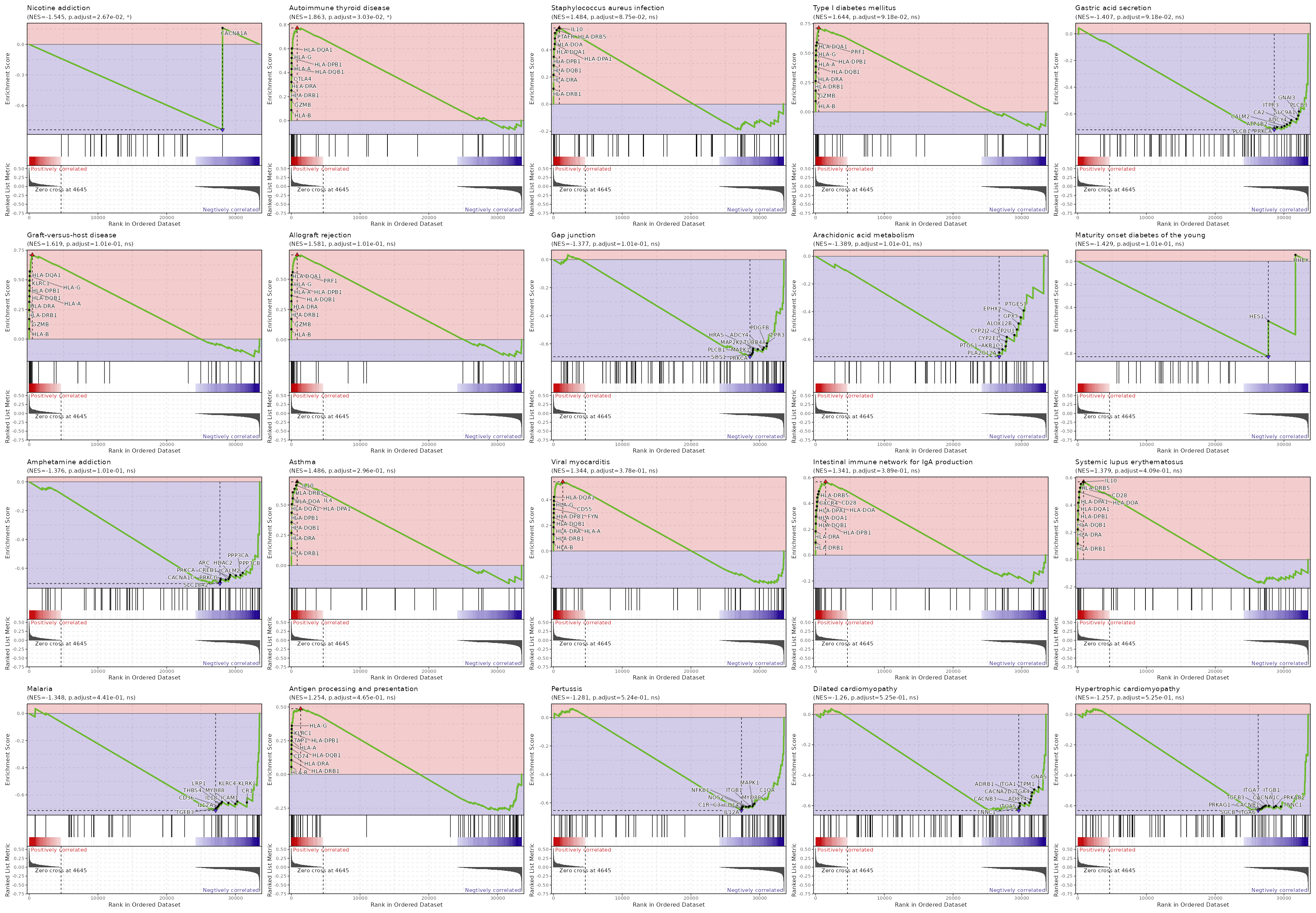 | Allograft rejection | 0.0093 | 0.255 | 0.3807 | 0.7644 | 1.6466 | 35 | GZMB,HLA-B,PRF1,HLA-A,HLA-DRB1,HLA-DQB1,HLA-E,HLA-DPB1,HLA-G,HLA-F,HLA-DRB5,HLA-DRA,HLA-DQA1,HLA-DOA,IL12A,CD28 |