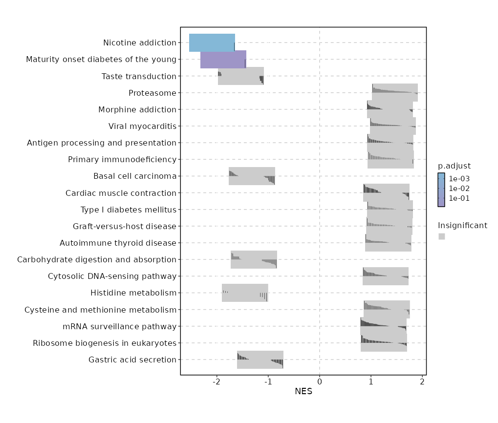 | Taste transduction | 0.0131 | 0.2066 | 0.3807 | -0.6705 | -1.3024 | 85 | KCNK5,PRKACB,PLCB2,PRKACA,PLCB1,PLCB3,TAS2R14,ITPR3,TAS2R50,TAS2R5,TAS1R3,TAS2R43,P2RY4,SCNN1A,TAS2R4,TAS2R30 |